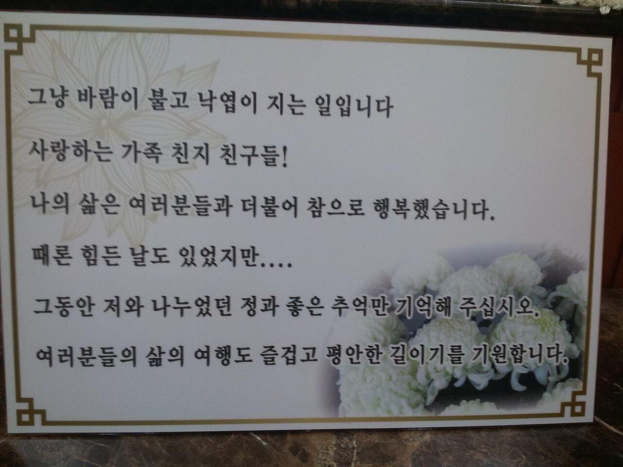 직접 뵌 적은 없지만, 많은 환자들을 보살폈던 한의사 선배님의 유언이라고 합니다.