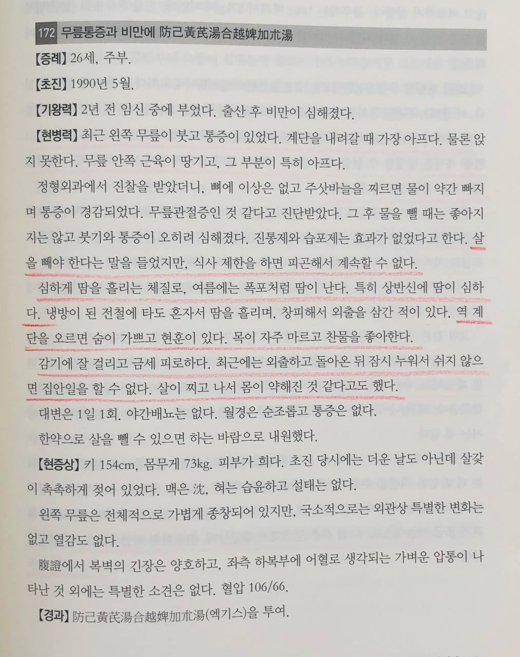 이분은 무릎이 붓고 관절에 물이 차고 땀이 많고 숨이 차는 방기황기탕증이었기 때문에 탁월한 효과를 보았고,