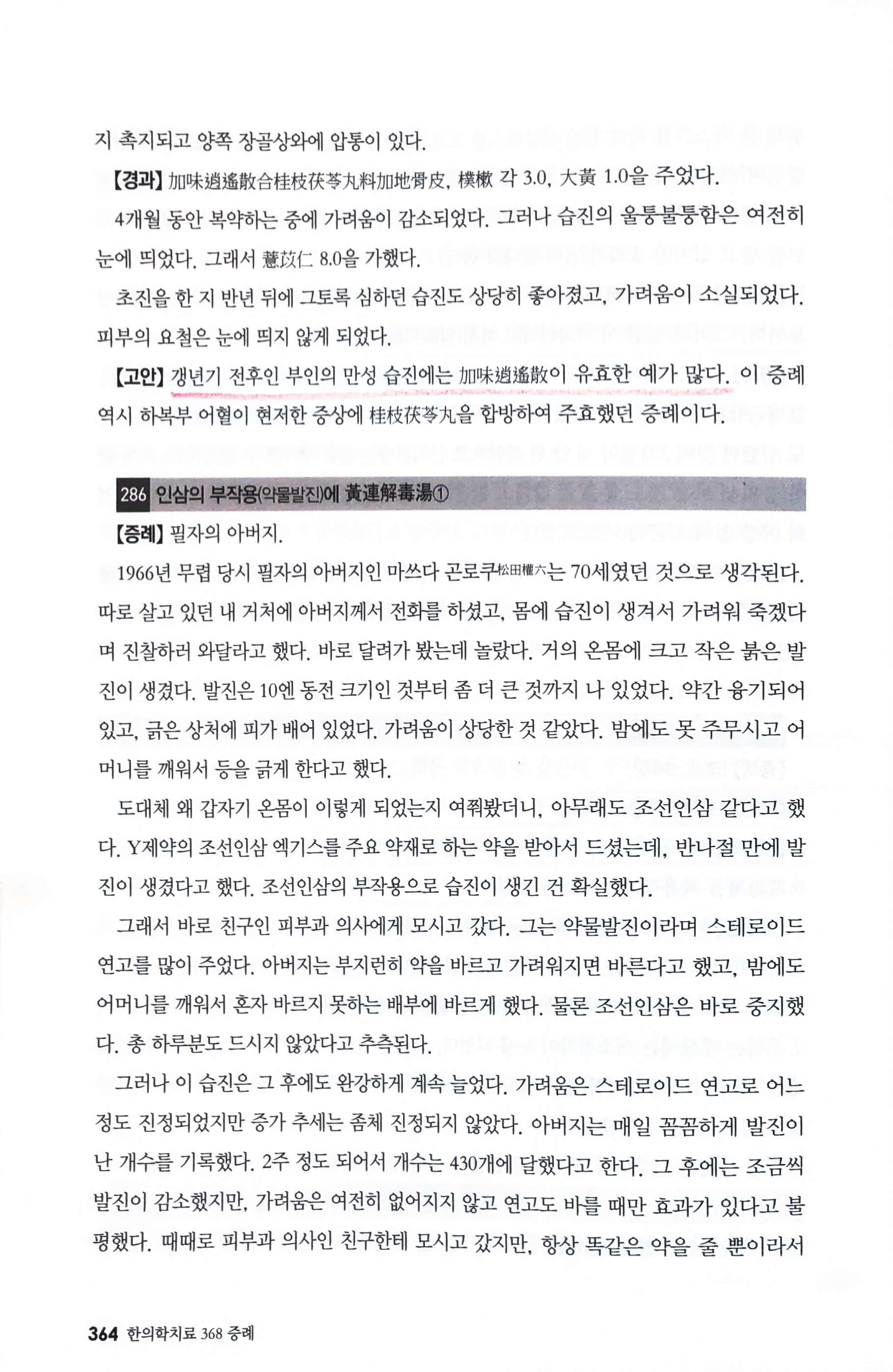 286 인삼의 부작용(약물발진)에 黃連解毒湯