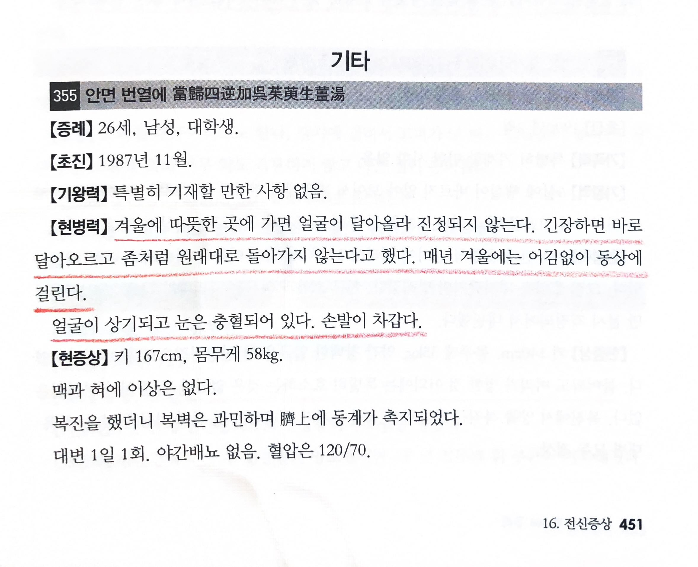 당귀사역가오수유생강탕의 특성을 잘 보여주는 좋은 증례다.