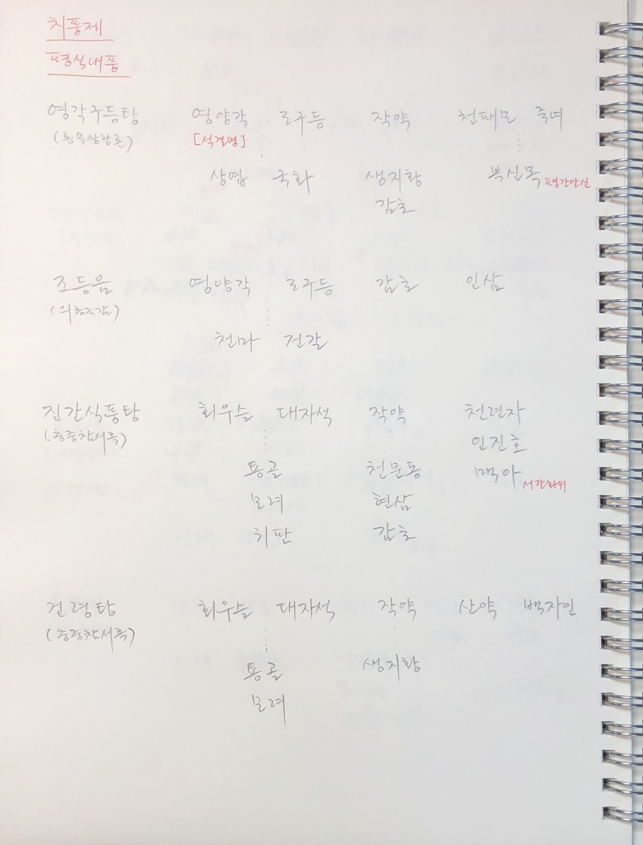 쉬는 날 오전 방제학 공부. 오늘은 평식내풍약류.