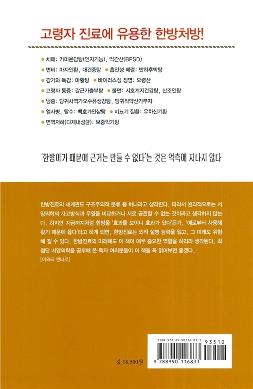 치매 : 가미온담탕(인지기능 개선), 억간산(BPSD; 치매의 행동심리증상 개선), 팔미지황환, 인삼양영탕
