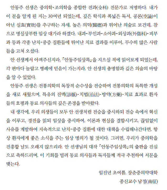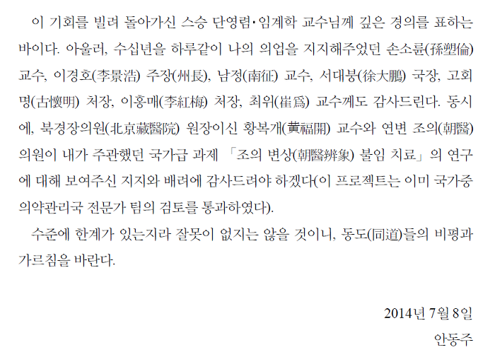 중의학과 조의학 고전문헌들을 정밀하게 연구하였기에, 지금처럼 사람들에게 행복을 줄 수 있는 의사가 될 수 있었다. (중략)